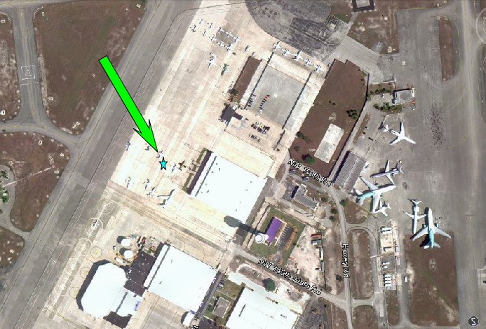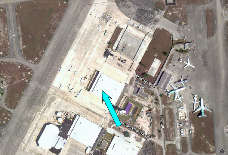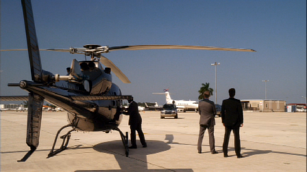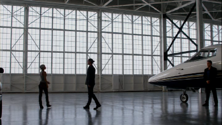 Then we go to the hangar where Fiona makes her delivery. This was filmed on location