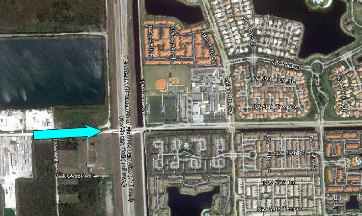 Then over Doral, looking east down NW 58th Street at the turnpike.