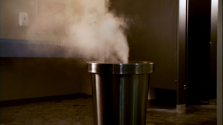 Then stretching artistic license far past the breaking point, they somehow cause a heat sensing sprinkler system to activate based on the presence of smoke. Location unknown.