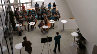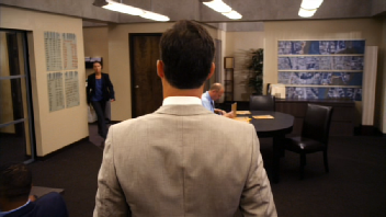 Then we see Sam put together some not so smart college students. This was filmed next door to where we saw Fi and Sam tracking Anson on Lincoln Lane North. At the New World Symphony.