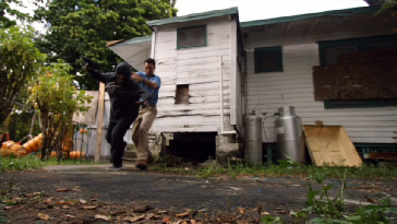 Then Michael and Ricky pull Dion into an alley. Location unknown.