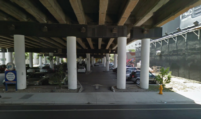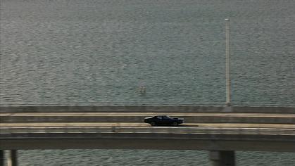 Then eastbound on the MacArthur Causeway passing the Coast Guard Building on Terminal Island. Thanks to Harold Loeser who found this location and let me know where it was filmed.