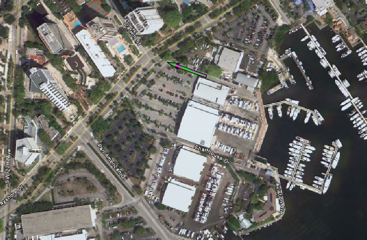 Then it cuts and they are still on the motorcycle being chased, but now they are back down by the studio on Darwin St. They are going thru the Fresh Market parking lot. They go over the small berm out onto South Bayshore Drive and head north.