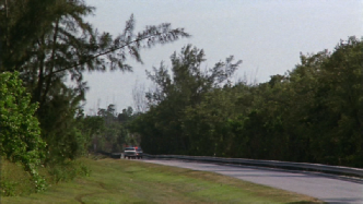 Michael gets to the rendezvous point but Fiona is not there. The exterior arrival shots were filmed on Virginia Key at the end of Arthur Lamb Jr. Road. Just outside the central waste water treatment plant. The shots of the inside of the truck were filmed somewhere else, likely in Hialeah, location unknown.